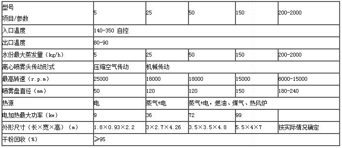 ◎干燥速度快,料液经雾化后表面积大大增加,在热风气流中,瞬间就可蒸发95%-98%的水份,完成干燥时间仅需数秒钟,特别适用于热敏性物料的干燥。