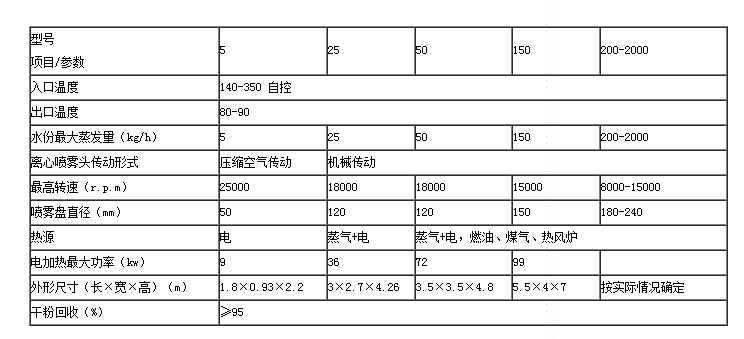 ◎干燥速度快,料液经雾化后表面积大大增加,在热风气流中,瞬间就可蒸发95%-98%的水份,完成干燥时间仅需数秒钟,特别适用于热敏性物料的干燥。